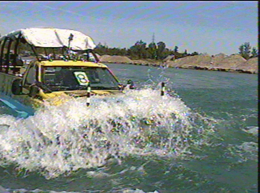 The weather was fine and clear with little wind. The river was relatively calm, with waves caused by wakes from boats and other watercraft in the tour area. On occasion, the vehicle encountered waves that washed over the hood and up to the windshield. Some spray also came in through the opened windows in way of the driver and tour guide seats.