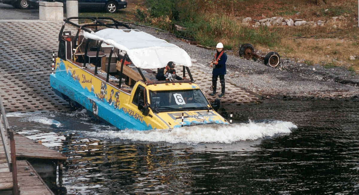 The Lady Duck was an amphibious vehicle arranged to carry up to 12 passengers on combined road and water-borne tours in the National Capital Region (NCR)Footnote 3 and on the Ottawa River. The vehicle was developed and built by the owner and entered commercial service at the start of the tourist season in June 2001.