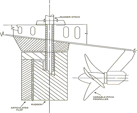 Unlike the rudder and propulsion system on a conventional vessel, the Stellanova is equipped with a Becker rudder and a variable-pitch propeller (see Figure 2). To make the vessel more manoeuvrable, the rudder has an articulated flap on its after edge. The helm can be turned up to 35° (at sea) or 45° (in port). The flap deflects automatically in the same direction as the rudder. This increases the helm angle, and the rudder-to-flap ratio can be as high as 2:1. The efficiency of the rudder gives the ship good manoeuvrability in different conditions. However, the investigation revealed that, when the propeller pitch is decreased quickly with the vessel moving forward, the vessel tends to swing unexpectedly to one side or the other, and the helmsman cannot predict to which side it will swing.