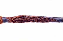 The steel wire cable lashing line was corroded well beyond its serviceable life. Although plastic protected wire cable can hide the condition of a steel wire, in this case, even a cursory inspection would have revealed the deteriorated condition of the cable. The failed cable, together with a similar piece of lashing from the starboard lifeboat davits, was examined by the TSB Engineering BranchFootnote 8 (see photos 4 and 5). It was concluded that only 37 per cent of the steel wires within the port cable were carrying the load and 55 per cent were effective in the starboard cable. Severe corrosion caused the starboard cable to fail under testing at a load of 1638 kg, and the port side would have likely failed at a load of approximately 1119 kg.