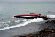 The master tried to reach the inflatable boat, but he was struck by a heavy sea and thrown overboard. He grasped some boards that were floating around him and drifted towards the shore; after several attempts, he was able to scale the cliff. The last time the master saw the other two crew members, they were on the top of the wheelhouse.