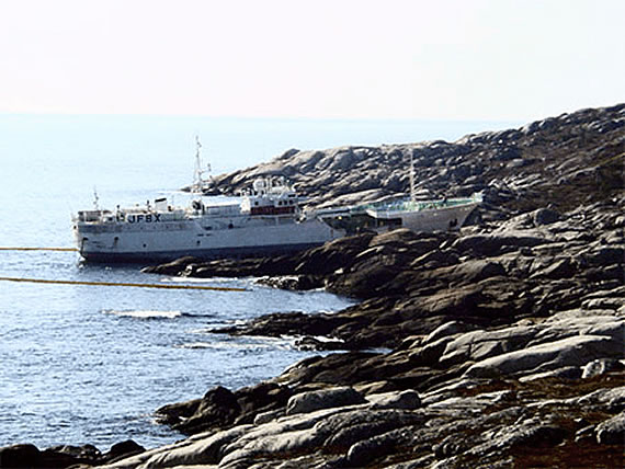 At approximately 2300, the Shinei Maru No. 85 was estimated to have been at or near full ahead speed when it ran hard aground near Portuguese Cove. None of the personnel on the bridge were aware that the vessel was in danger of running aground. The vessel was holed in two fuel tanks allowing oil to leak from the vessel. An oil spill containment boom was placed around the vessel soon after going aground, but a considerable and undetermined amount of oil pollution had been released into the environment. No one was injured.