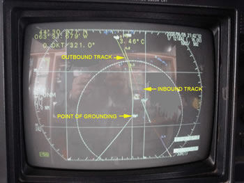 The type of video plotter on board was used as a fishing aid rather than as a navigational aid. Nevertheless, the vessel's track inbound to Halifax was displayed on the video plotter, and the outbound course to grounding was also visible. The outbound plot line followed the recommended route up until a point just after Lichfield Shoal (when the pilot disembarked). The straight-line plot of the vessel's track then changes direction from Lichfield Shoal to the point of grounding (see Photo 3). However, the probable trackFootnote 5 of the vessel is as shown in Appendix A.