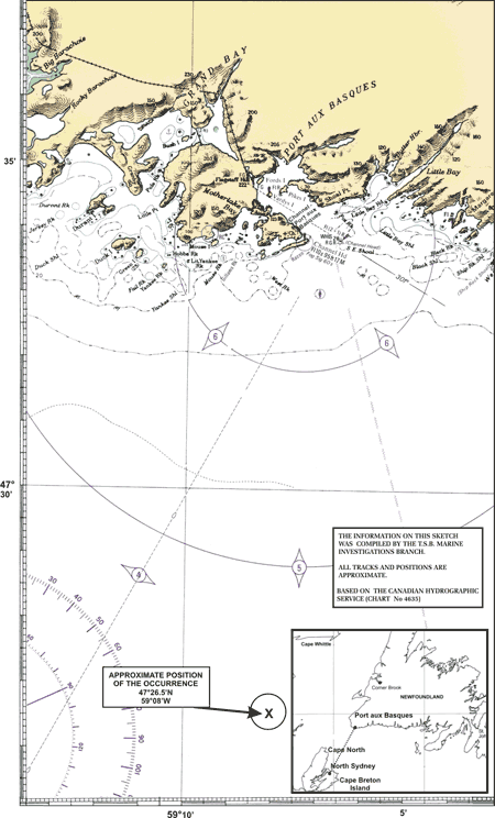 At 1807 Newfoundland daylight timeFootnote 5 on 12 May 2003, the passenger ferry Joseph and Clara Smallwood with 138 passengers and 80 crew departed on a scheduled crossing from North Sydney, Nova Scotia, to Port aux Basques, Newfoundland and Labrador.