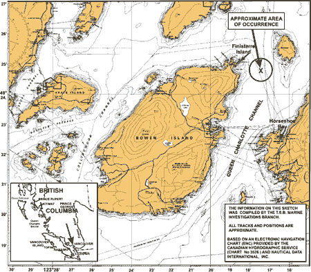 At 0923, the vessel departed Horseshoe Bay in clear and calm conditions, on its fourth trip of the day. It had a total of 318 passengers, 137 vehicles and 28 crew on board. There was no marine traffic in the immediate area and, after the engines were set to "Full Away", the master handed over the conduct of the vessel to the chief officer and went down to his office.
