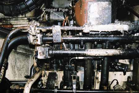 - the fuel oil pressure gauge pipe, attached to the compression fitting on the A bank, was made of copper and had fractured;