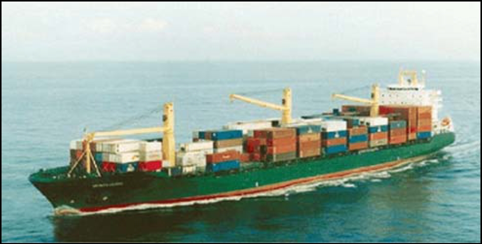 The 2470 TEUFootnote 2 container vessel has five holds with the crew accommodation and engine-room space located aft of the Number 5 hold. It has three cranes that are utilized primarily for cargo operations. The wheelhouse structure is offset to starboard from the centre line. This is to negate the blind sector effect caused by the cylindrical steel vertical pillars along the centre line that house the cranes.
