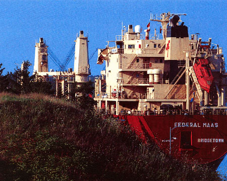 On 11 August 2004, the Federal Maas departed Burns Harbour, Chicago, United States, bound for Montréal, Quebec, en route to Algeria, with 19 798 tonnes of corn. The vessel had an uneventful voyage downbound through the Great Lakes/St. Lawrence Seaway, arriving at Iroquois Lock at 1500 eastern daylight timeFootnote 2 on August 15. As the Federal Maas approached Iroquois Lock, the head structures operator (HSO) and two canal structures operators (CSOs) went to the control kiosk at the upper (west) end of the lock (see Figure 2). One of the CSOs opened the upper gates, raised the arrester wire boom, activated the green navigation light, and waited as the vessel proceeded into the lock. In order to ensure that the vessel could be tied up quickly in the event of propulsion or steering equipment failure, both CSOs walked along the lock wall with the vessel. The HSO accompanied CSO 1 to the forward end of the vessel and assisted in securing the vessel's No. 2 wire to a bit and "spot" the vessel into position. CSO 1 then returned to the stern of the vessel to help with the tie up, before proceeding to the upper control kiosk.