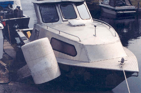 The pleasure craft was constructed of aluminum and had an overall design similar to the workboat. The operator's station was located starboard and aft of a small cuddy cabin. A convertible canvas top extended aft from the control station (see Photo 3).