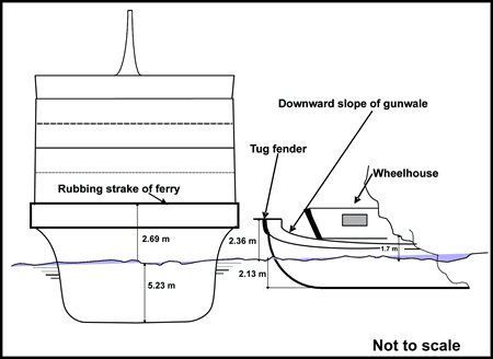 - The structural incompatibility between the two vessels allowed the ferry to impact upon and severely damage the tug's superstructure.