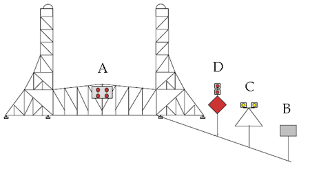 To provide approaching vessels with information on the status of the bridge, an identical set of signal system is provided on both sides of each bridge. At all bridges, the signal system on each side of the bridge is identical. It consists of navigation lights mounted on the bridge, a set of three signs at varying distances from the bridge, and a set of controls and indicators in the bridge control room to operate and monitor the navigation lights. For each bridge, the post sign distance is determined in function of the currents and the normal vessel speeds in order to provide safe stopping distance to vessels (see Figure 1).