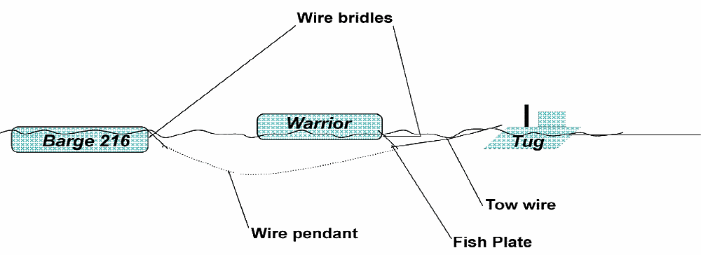 The tug Ocean Warrior towing the barges Warrior and Barge 216