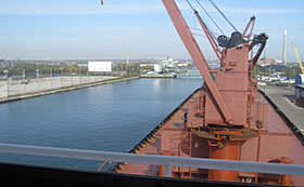The geared bulk carrier Seneca (see Photo and Photo 2), formerly the Stokmarnes, Millenium Eagle, and the Mangal Desai, typically delivers steel to Great Lakes ports and leaves with grain for overseas. As with most bulk carriers, when in light loading condition, the vessel presents a significant wind surface area.