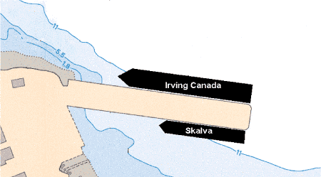 During the cooling-off period of 04 to 11 January 2006, with cargo hatches closed following the CO2 discharge into the hold, the tanker Irving Canada arrived at the port to discharge a cargo of gasoline and diesel products. On 06 January 2006, the tanker Irving Canada requested to tie up to the north side of the public wharf, 35 m from the Skalva on the south side, but the request was refused by TC Harbour Operations in consultation with TC Marine Safety.