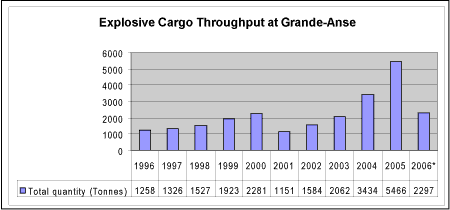 The practices commonly followed at the Grande-Anse Terminal when unloading explosive cargo are described below. These practices are a combination of those prevalent at the time of the occurrence and measures adopted subsequently in May 2006.Footnote 17