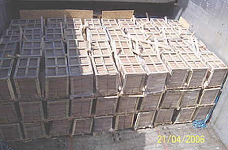 To facilitate the forklifts' operation and to ensure rapid, uniform, and safe unloading, the metal cage is always lowered in the same area in the hold. To accomplish this manoeuvre while the vessel is rolling - the result of transferring cargo via cranes - the cage is dropped a few centimetres onto the deck. Since the incident, a sheet of plywood has been fitted to the underside of each cage.