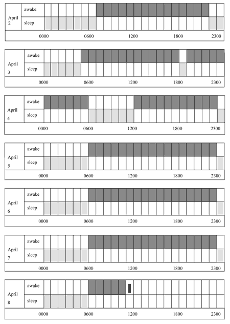 - He incurred a sleep debt by being awake for approximately 24 hours from April 3 to April 4 and then reportedly not getting restorative sleep for another two days;