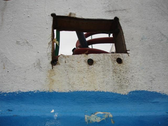 There was one freeing port at the forward end of the main deck on the starboard side. There were two freeing ports on the port side-one at the forward end of the main deck, and one on the forecastle. In all cases, the freeing ports were roughly cut by hand with the cut extending into the hull (see Photo 2 and Photo 3).
