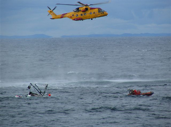The CCG towed the swamped vessel to Triton, Newfoundland and Labrador, where it was subsequently pumped out and lifted ashore.