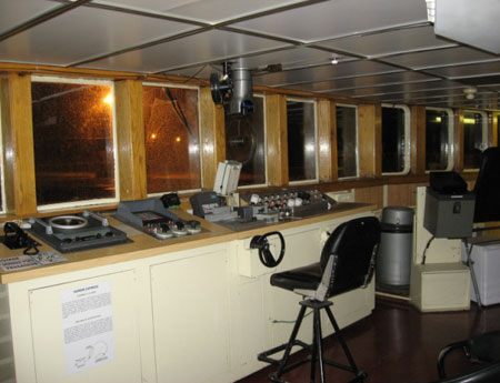 The bridge was equipped with several consoles. One was located approximately on the centreline and forward against the front bridge windows, and contained the autopilot and helm. A console in each wing contained engine, rudder, and bow thruster controls. Two radars and the electronic chart system (ECS) were located between the port and centreline consoles. A third radar was to starboard of the centreline console (see Photo 2).