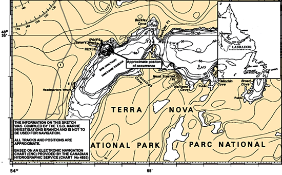 On 03 November 2007, the ownersFootnote 2 of the Sea Urchin were contacted by the Canadian Coast Guard (CCG) to assist in fast rescue craft (FRC) training.Footnote 3 That afternoon, the Sea Urchin, with two of the three owners acting as operator and crew, respectively, arrived in Salton's Brook, Newfoundland and Labrador (N.L.). A CCG instructor joined the vessel early on 04 November 2007. The vessel—with a total of three persons on board—then departed for Newman Sound, N.L., accompanied by two FRC, each with a crew of four CCG personnel.