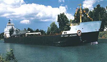 The Capt. Henry Jackman is a self-unloading bulk carrier with wheelhouse, accommodation, and machinery located aft.