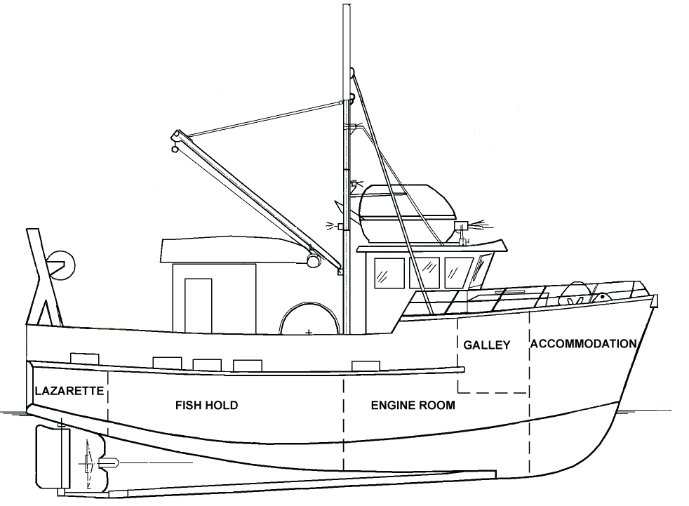 The L'Acadien II was a small fishing vessel of closed construction, with an all-aluminum welded hard-chine hull. The hull below the main deck was subdivided by three transverse watertight bulkheads enclosing (from forward) the crew accommodation, the galley and the engine room, the fish hold, and a lazarette containing the hydraulic steering gear and a pair of fuel tanks and ballast tanks. The wheelhouse was located in a deckhouse forward of midships, and a single weathertight door on the starboard side led from the wheelhouse onto the main deck aft. In 2004, the shell was reinforced with 12.7 mm aluminum doubling plate fitted over the existing plating in way of the waterline for navigating in ice during the seal hunt (see Appendix A).