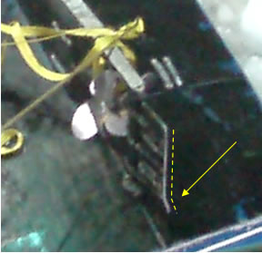 The damage to the steering system (see Photo 4) was such that the vessel could not be steered on a steady course or turn to starboard. The rudder movement was reported to be from 45° port to 5° port,Footnote 11 and this caused a natural tendency to turn to port, even when full starboard helm was applied. It was also observed that the uppermost part of the rudder was bent to port.