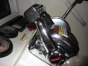 When the vessel began to heel to port, the instructor told the operator to increase throttle. This may explain why the three-quarter throttle setting (see Photo 7) and the amidships motor position conflict with reports that the vessel was in the midst of a slow, relatively tight turn at the time of the capsizing. It is also possible that the throttles were inadvertently pushed forward as the vessel decelerated while capsizing. The clutches were electrically controlled, and the investigation concluded that the port engine disengaged during the capsizing.