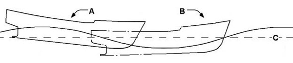 Additionally, the wave periodFootnote 19 was estimated at 3 to 4.5 seconds. This corresponds to wave lengthsFootnote 20 of 14 m to 32 m, and wave speedsFootnote 21 of 9 to 14 knots (see Appendix C - Table 2). The period of encounter for the vessel in these conditions would have been between 9 and 26 seconds.Footnote 22 The longer the period of encounter, the greater the time it takes for a wave to pass along a vessel's hull.