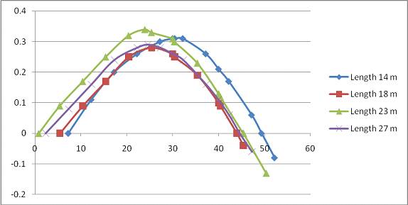 - ratio of wave height to length (1:15, 1:20, 1:25, 1:30), at wave lengths of 14 m, 18 m, 23 m, and 27 m