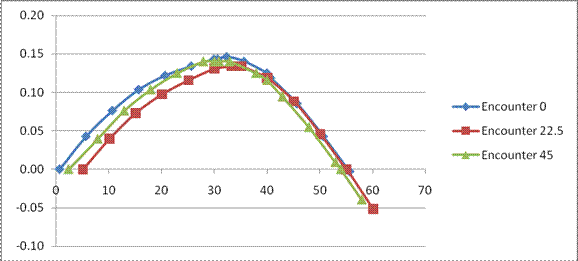 - angle of encounter from the longitudinal axis at the after end (0°, 22.5°, and 45°)