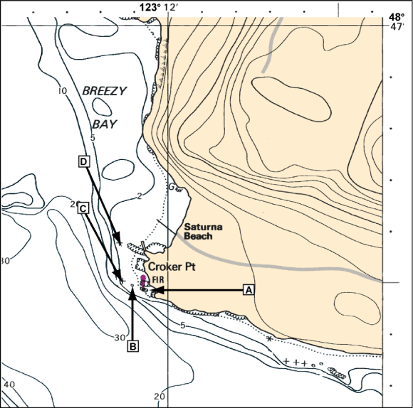 - C, D: two underwater rocks with less than 2 m of depthFootnote 9