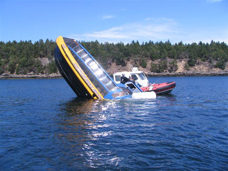 On the morning of 23 July 2009, the passenger vessel Explorathor departed Steveston, British Columbia, with 34 persons on board for a whale-watching excursion. At 1252, on the return journey, the vessel struck a submerged object off Croker Point, Saturna Island, British Columbia, and began to take on water. Passengers and crew were transferred to another whale-watching vessel. The Explorathor subsequently flooded and sank in Campbell Bay, Mayne Island, British Columbia, at 1334.