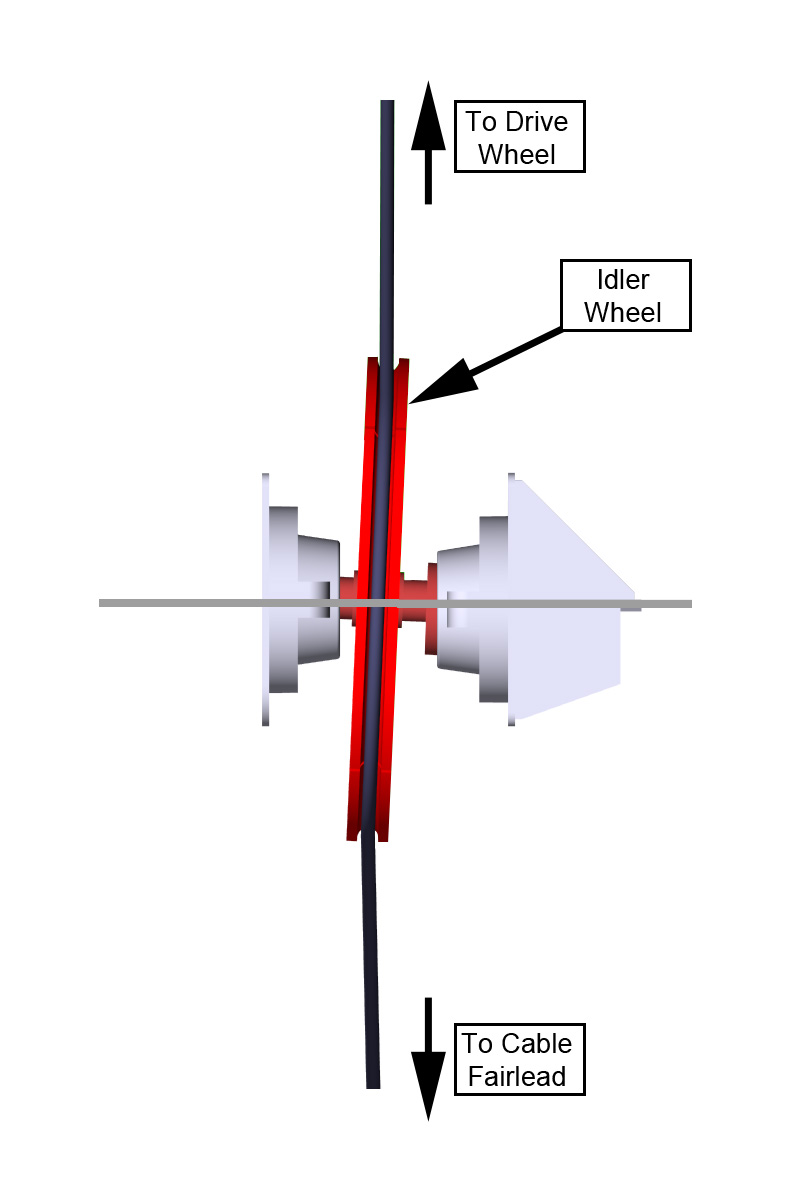 The owner of the Ecolos has modified the design of the drive system such that the idler wheel axles are of a continuous diameter, that is, 10.6 cm (4 inches), from bearing to bearing. Floating bearings have been installed on either side of the axles. The bottom rollers on the Ecolos are now constructed of 100% polyurethane. There is a “weak link” installed at the cable shore attachments. Swaged 6 x 26 independent wire rope core (IWRC) cables have also been installed.