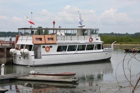 The vessel, berthed in the Chenal du Moine, is used for daytime sightseeing from June to September and operates around the Port of Sorel and the Sorel Islands on the western end of Lac Saint-Pierre, Quebec.
