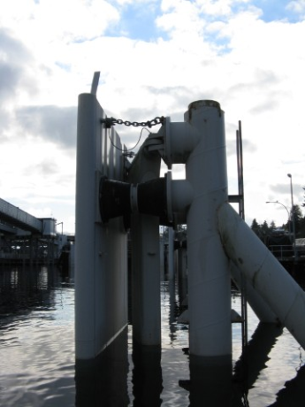 Damage to berth 2 (Appendix B) was limited to the port-side leads. This included damage to the outermost port-side fender and its articulated pad. As a result of the collision, the complete articulated landing pad broke free from the fender and ended up on the ocean floor. The attachment points between the fender and the articulated landing pad were torn away (Photo 4).