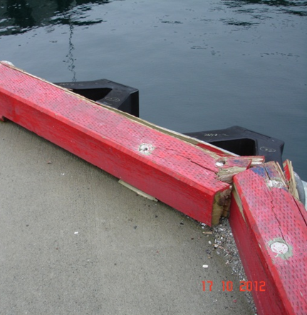The damage to the Portugal Cove terminal was limited to the wooden cap rail around the edge of the concrete wharf (Photo 4). The damage had no effect on the ferry services.
