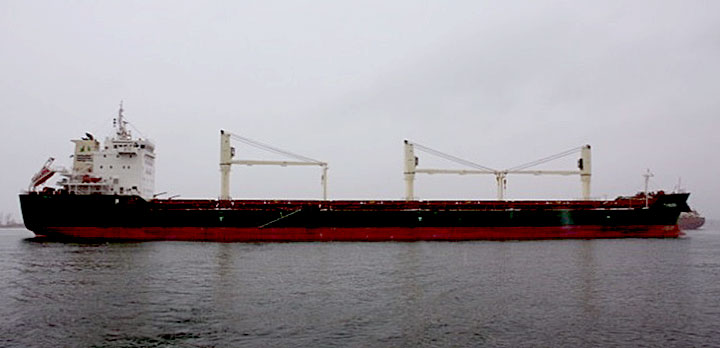 The Tundra is a bulk carrier with machinery and accommodation spaces located aft (Photo 1). The vessel has 6 cargo holds that are serviced by 3 electric-hydraulic cranes mounted on the vessel's centreline. Each crane has a lifting capacity of 30 tonnes.