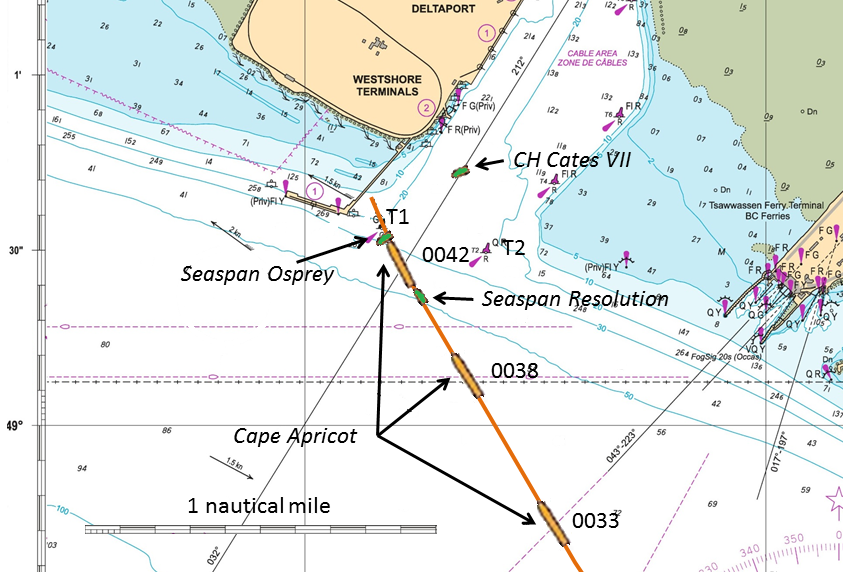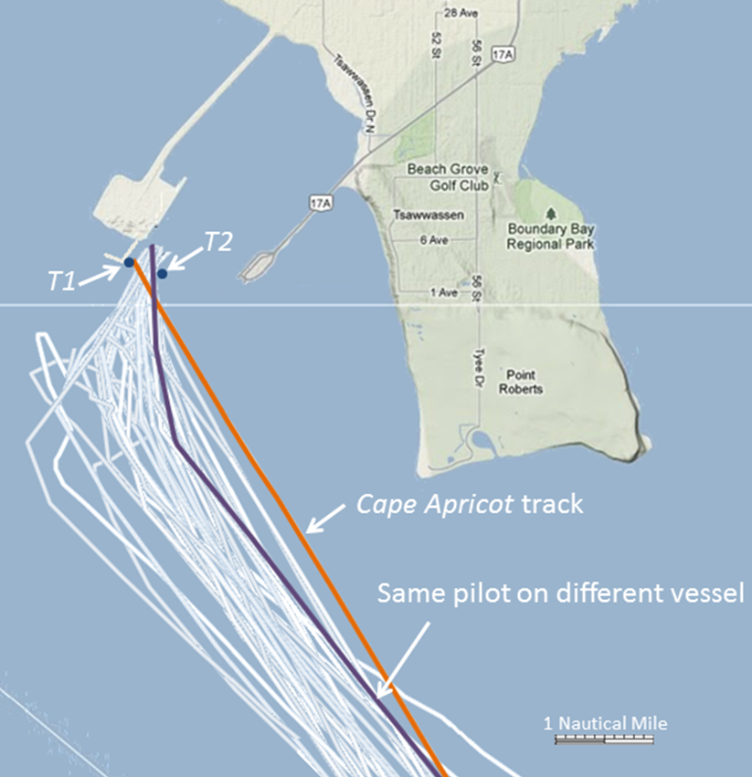 - The Cape Apricot's direct course to Roberts Bank necessitated a tighter alteration of course to starboard and placed the vessel in a line of approach to the trestle.