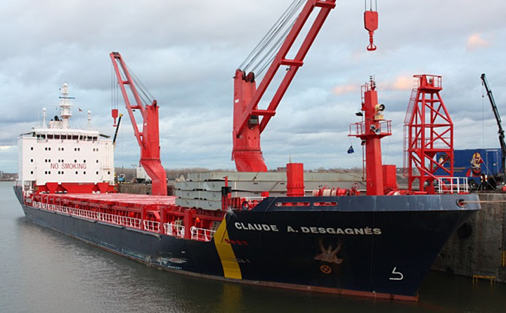 The Claude A. Desgagnes is a steel-hulled general cargo vessel with machinery spaces and accommodations aft (Photo 1). The vessel is fitted with 3 cargo holds serviced by 2 cranes mounted on the vessel's port side; each crane has a lifting capacity of 150 tonnes. The vessel also has a 500 kW bow thruster.