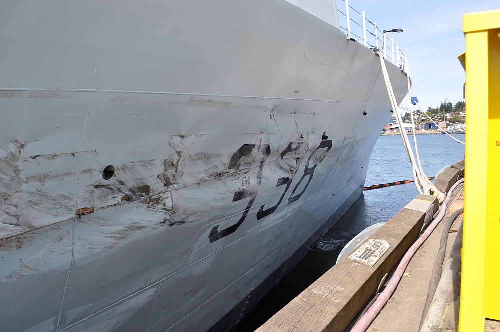 Following the striking, the American Dynasty remained embedded in the HMCS Winnipeg until a preliminary assessment of damageFootnote 20 to both vessels was conducted. With the assistance of tugs, the American Dynasty was separated from the HMCS Winnipeg at around 1710, at which time the American Dynasty proceeded under tug escort to the lay berth at the Victoria Shipyards, located adjacent to the graving dock. The HMCS Winnipegremained alongside pier 3C at CFB Esquimalt.