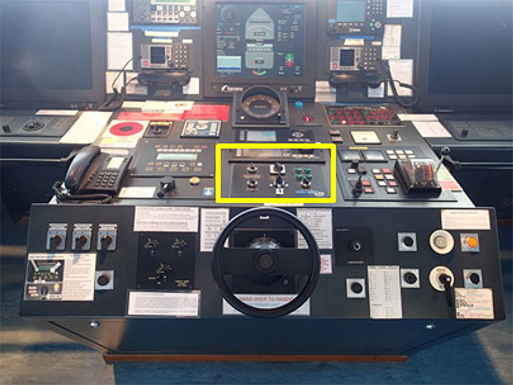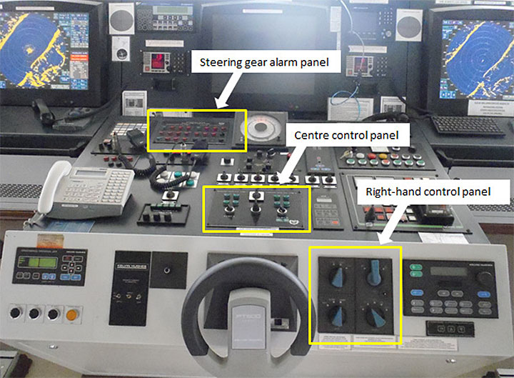 At the time of the Halit Bey's construction, the shipbuilder installed 2 different steering gear control panels on the bridge main console: the centre control panel and the right-hand control panel (Photo 2). These 2 control panels had been manufactured by different companies.