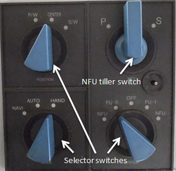 - When the selector switch on the centre control panel is set to autopilot (position 3), the autopilot does not engage. Instead, this transfers steering control selection to the right-hand control panel. It was the practice on board the Halit Bey for the centre control panel to always remain set to autopilot (position 3), and for the bridge officers to use only the right-hand control panel to select the steering mode.