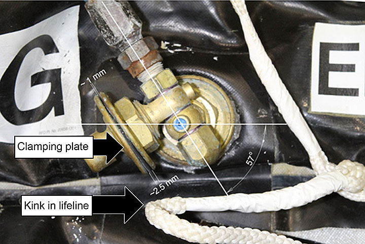 - Two of the 3 life rafts failed to inflate fully due to buoyancy tube ruptures at the inflation valves. The ruptures may have been caused by the lifelines becoming entangled with the inflation valve assemblies and creating excessive strain in the tubes.