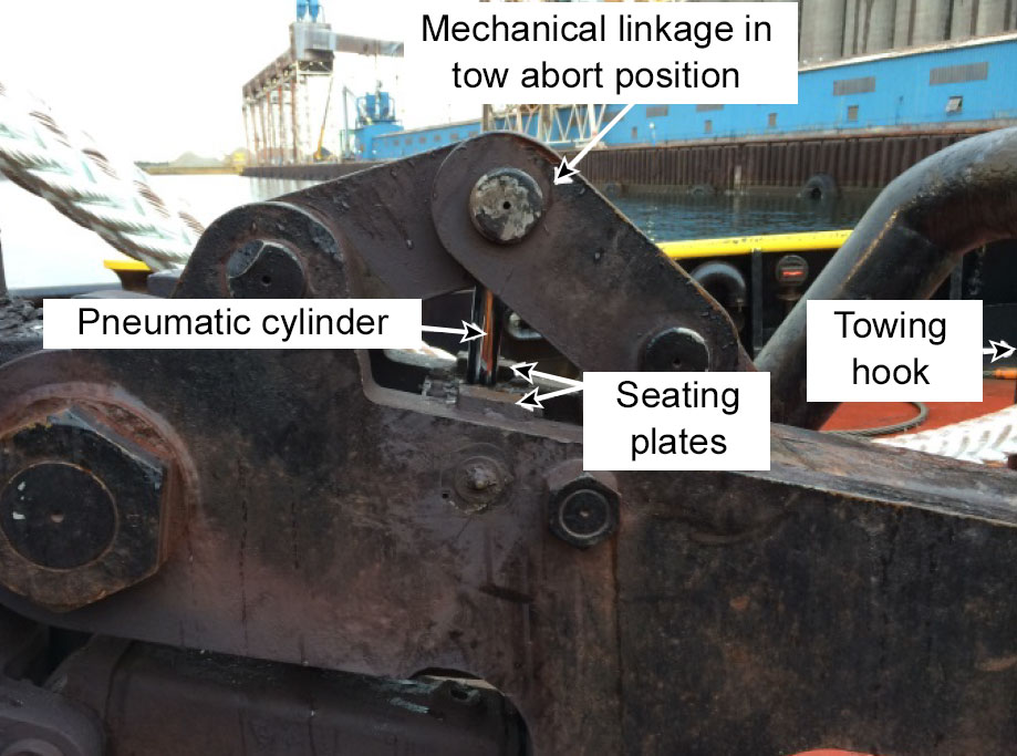 The investigation could not determine at what point in time the tow-abort mechanism had ceased to function when the applied tension in the tow line was greater than 10 tonnes.