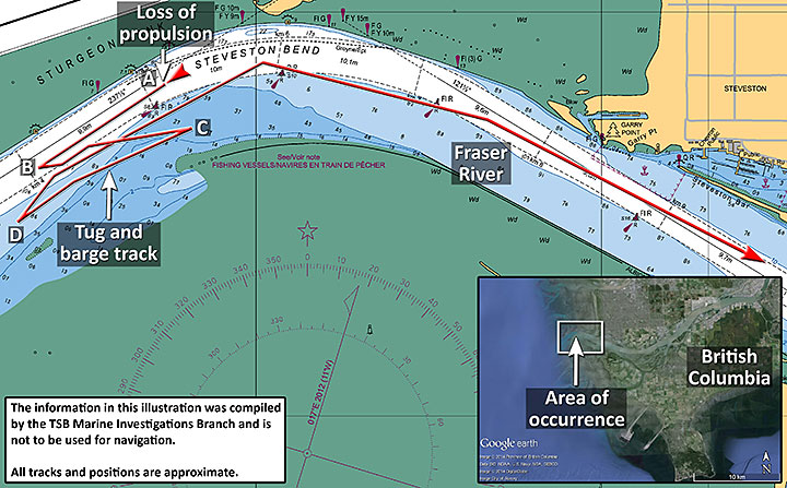 Several occurrences involving propulsion failures on the Jose Narvaez had been reported to the TSB in the past. In November 2010, the tug lost a seal in a CPP while towing a barge off Halibut Bank Buoy, Strait of Georgia, British Columbia.Footnote 16 The company reported that, at that time, the vessel was also experiencing issues with propeller pitch control. In July 2011, the tug sustained a major engine failure (failure of the power pack) while inbound the Fraser River.Footnote 17 In May 2012, the tug ran aground in Steveston, British Columbia, after another power pack failure.Footnote 18 In June 2013, the tug reported an engine failure (failure of the power pack) with a crankcase explosion in Georgia Strait, British Columbia.Footnote 19