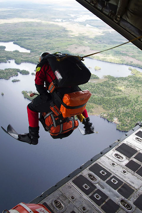 Using channel 16, the aircraft crew asked the Cock-a-Wit Lady to turn to port. Although no vessels turned to port, one turned to starboard. The Hercules crew decided that this could be the vessel in distress. Before the SAR techs jumped, the crew had a pre-drop safety brief, made another pass over what they assumed was the vessel in distress, and performed a wind drift assessment. On the final pass over the vessel, the 2 SAR techs jumped and deployed their parachutes.
