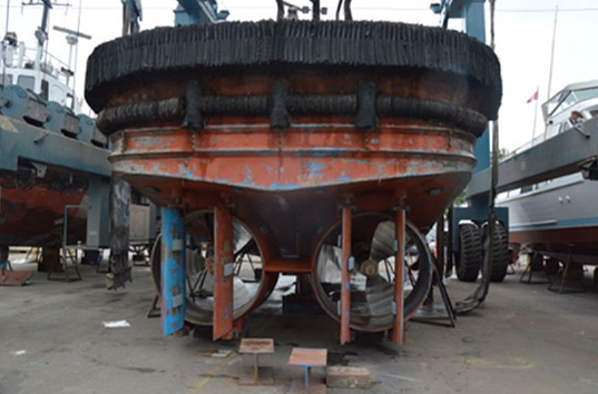 - Both port and starboard rudders were undamaged, and the port outer (blue) rudder and the starboard inner rudder were misaligned towards the port side. These misalignments were visually estimated to be approximately 3° (Figure 8).