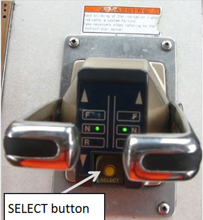 Vessel propulsion can be controlled from only one station at a time.Footnote 15 At the station where control is to be transferred, the operator sets the propulsion control levers to neutral (0°) and depresses the yellow SELECT button momentarily. The 2 green neutral (N) lamps illuminate continuously to indicate that the control transfer was successful (Figure 6).